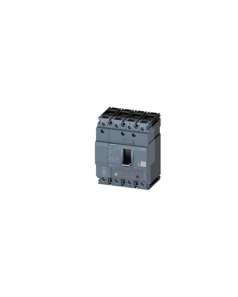 Interruttore a bassa tensione SIEMENS 3VA IEC in cassa modellata con unità di interruzione termica-magnetica. Struttura 3VA11 con capacità di interruzione media (classe M). 63A lcu a 4 poli: (10KAIC A 690V) (55KAIC A 415V). Unità di interruzione TM240 con protezione neutra regolabile 100PCT. Caratteristiche speciali: collegamento con terminale a scatola / tappo in acciaio. Dimensioni (L x A x P) In: 4 x 5,1 x 3,5.