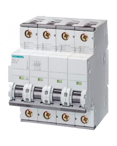 Interruttore magnetotermico Siemens 4P 10A 5 kA, Tipo C L'interruttore automatico miniaturizzato serie Sentron Siemens ha quattro poli e una capacità di interruzione di corrente di 6kA. In caso di sovraccarico o cortocircuito, questi interruttori automatici miniaturizzati interrompendo in modo sicuro il circuito collegato e proteggendo in modo affidabile le installazioni elettriche e le apparecchiature da eventuali danni. Caratteristica di intervento di tipo C.