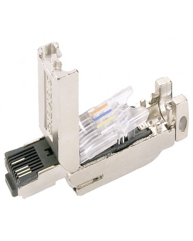 Siemens, Connettore maschio Industrial Ethernet RJ45 - Serie FastConnect - 6GK1901-1BB10 2AA0 per trasferimento dati. Dispone di sofisticato sistema di assemblaggio rapido e schermatura EMC (compatibilità elettromagnetica) contro le interferenze. Compatibile con cavi Ethernet a 4 conduttori con velocità massima di 100Mbits (megabit) permette il diretto collegamento di dispositivi distanti fino a 100m senza applicare patch. Features: serracavo integrato, protezione IP20, 35g di peso.